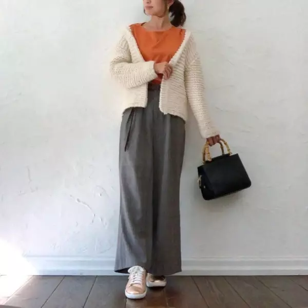 ニットカーディガンコーデ27選 レディース 19 白 黒 グレーのニットカーディガンの上手な着こなしは Oggi Jp
