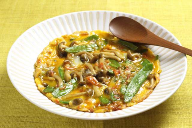11 06 05 さやえんどうとキムチのチーズ卵とじ キムチレシピ