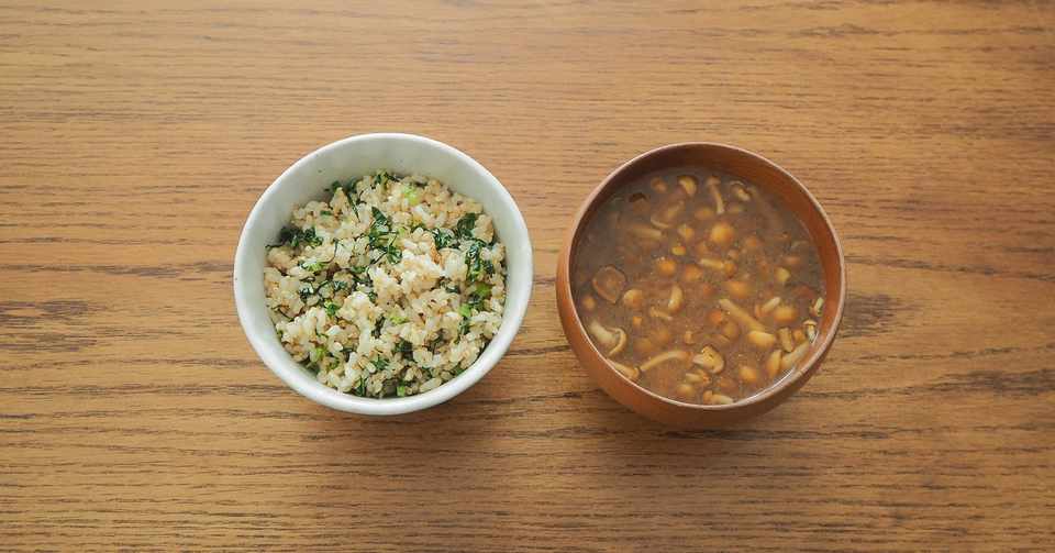炒め小松菜の玄米ごはん なめこのみそ汁 実践料理研究家 みそ探訪家 岩木みさき Note