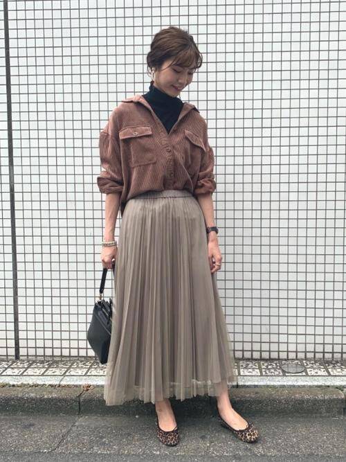 キャメル コーデュロイ スカート コーデ