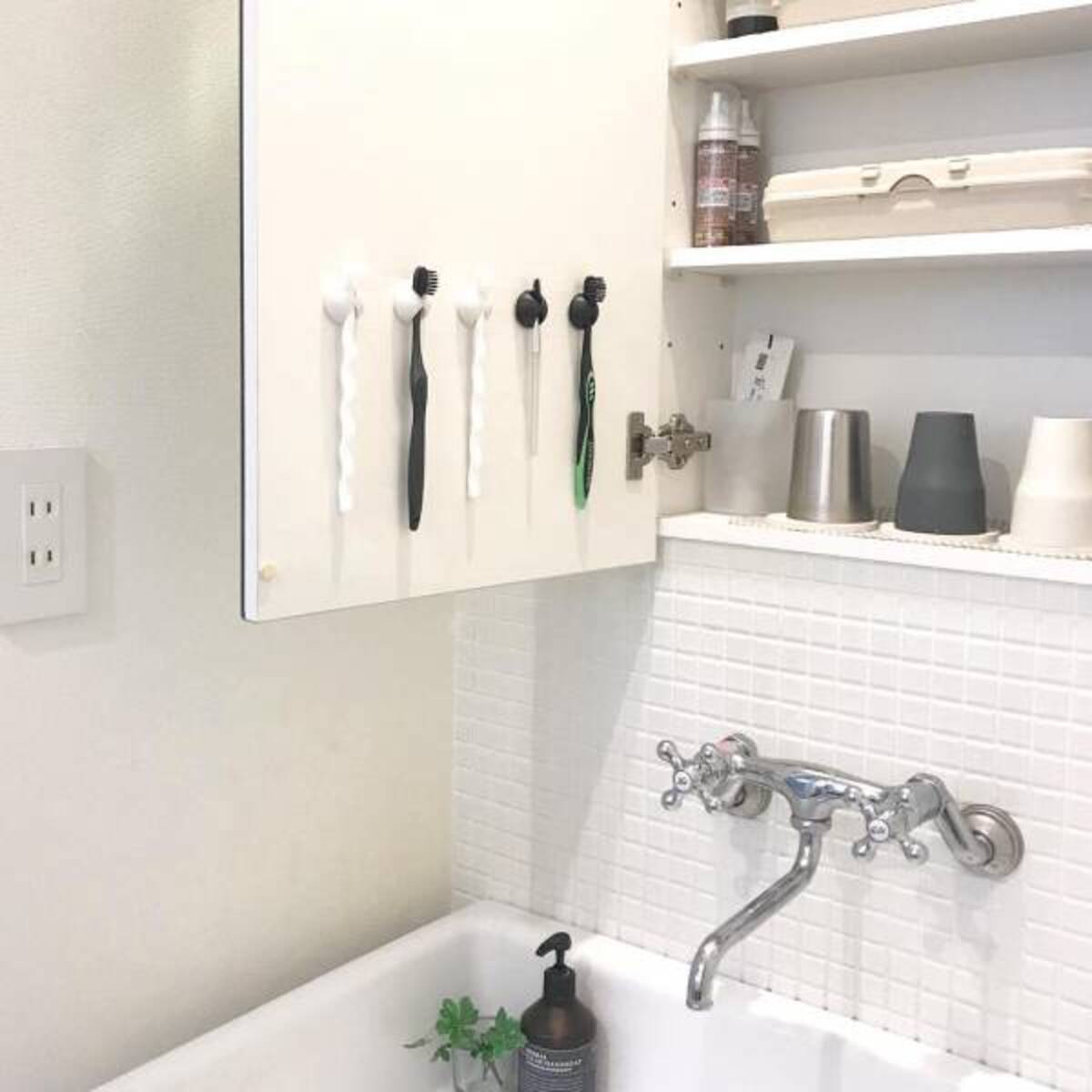 洗面化粧台のあのデッドゾーンに歯ブラシをぶら下げて無駄なし収納 家ブログ キタノアカリ暮らしのレビュー