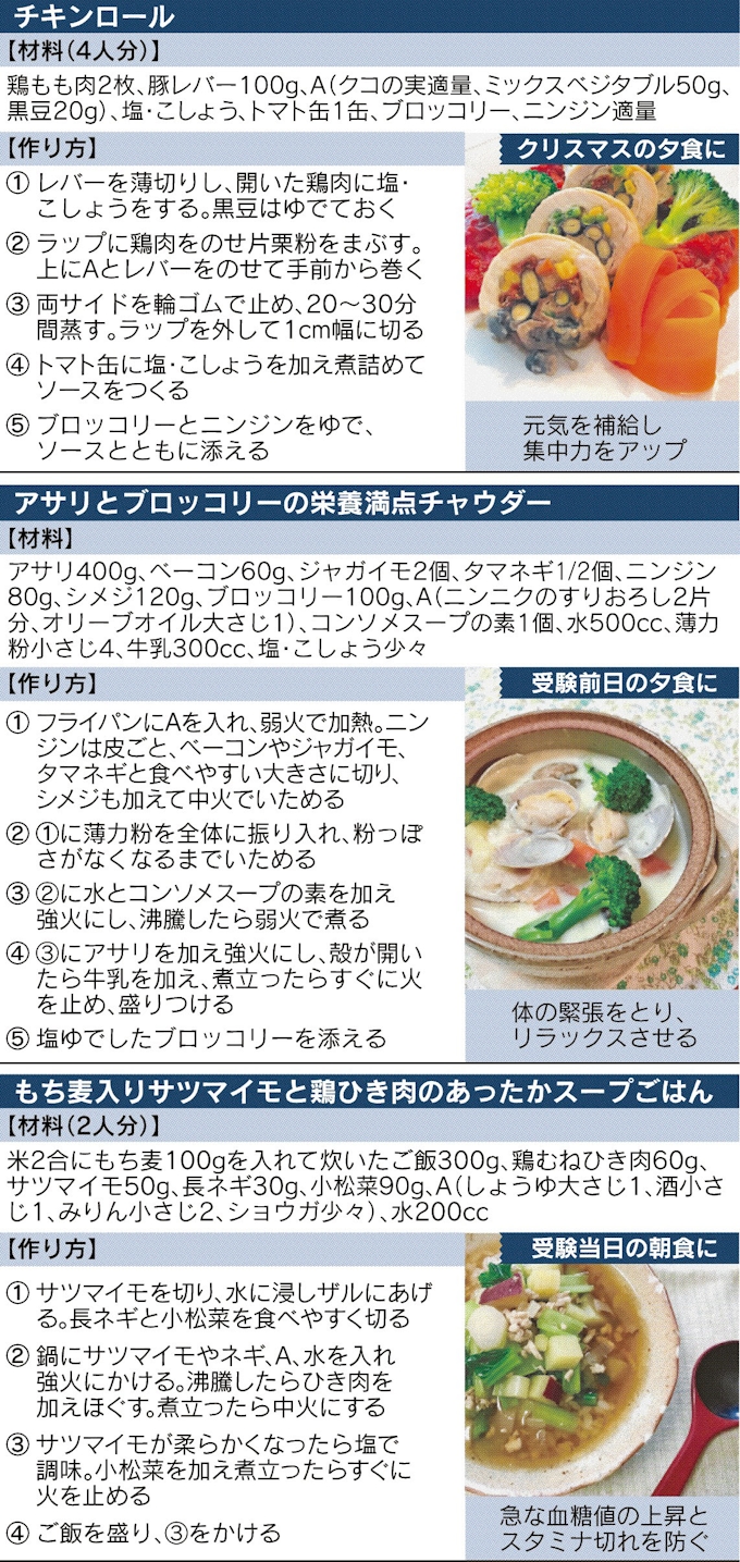 受験メシ 栄養満点 チキンロール 鶏そぼろおにぎり 日本経済新聞