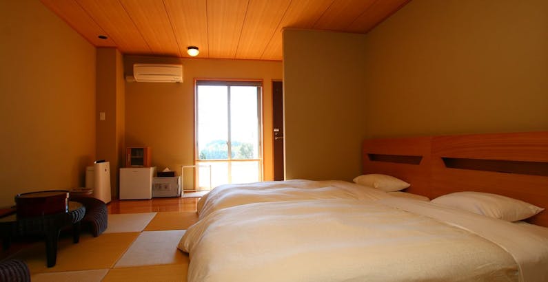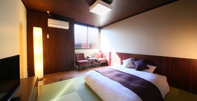 6f 波の音タイプ1 和モダンルーム お部屋 淡路島洲本温泉 淡路インターナショナルホテル ザ サンプラザ 和室 モダン 寝室 モダンベッドルーム 和室 ベッド インテリア