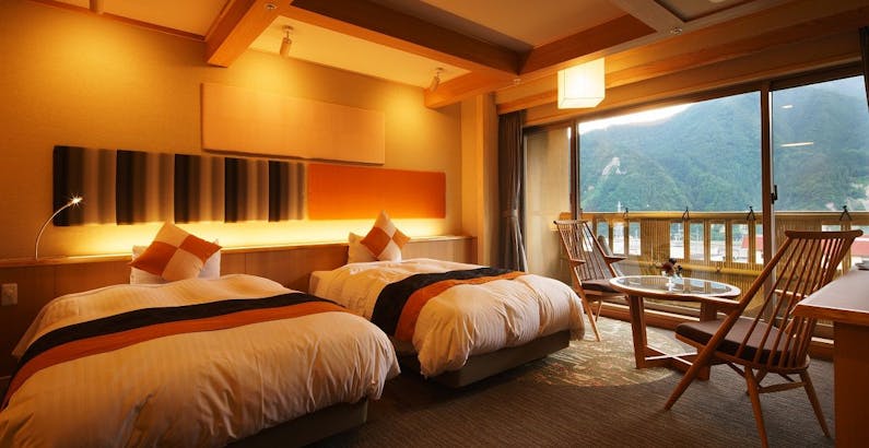 四ツ星 和モダン客室 懐かしさと新しさが共存するベットルーム付モダン客室 スタンダード 積善館 佳松亭積善 積善館山荘 宿泊予約は じゃらん